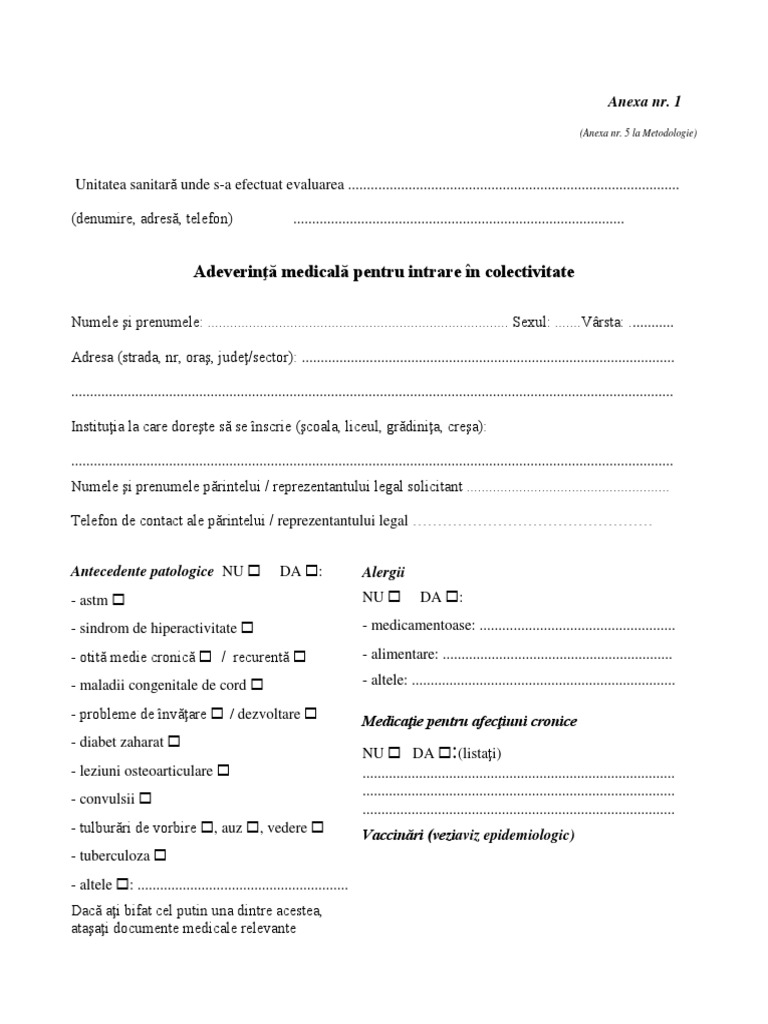 Adeverinta Medicala Pentru Inscrierea In Colectivitate Pdf