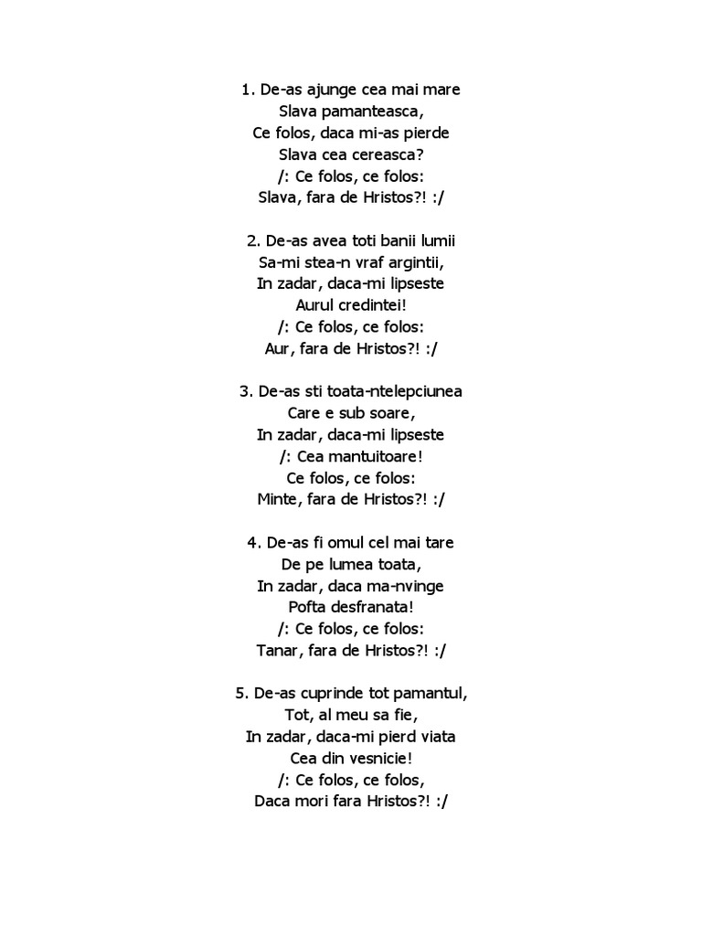 Ce Folos Viata Fara De Hristos Versuri