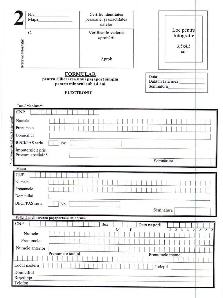 Cerere Eliberare Pasaport Copii