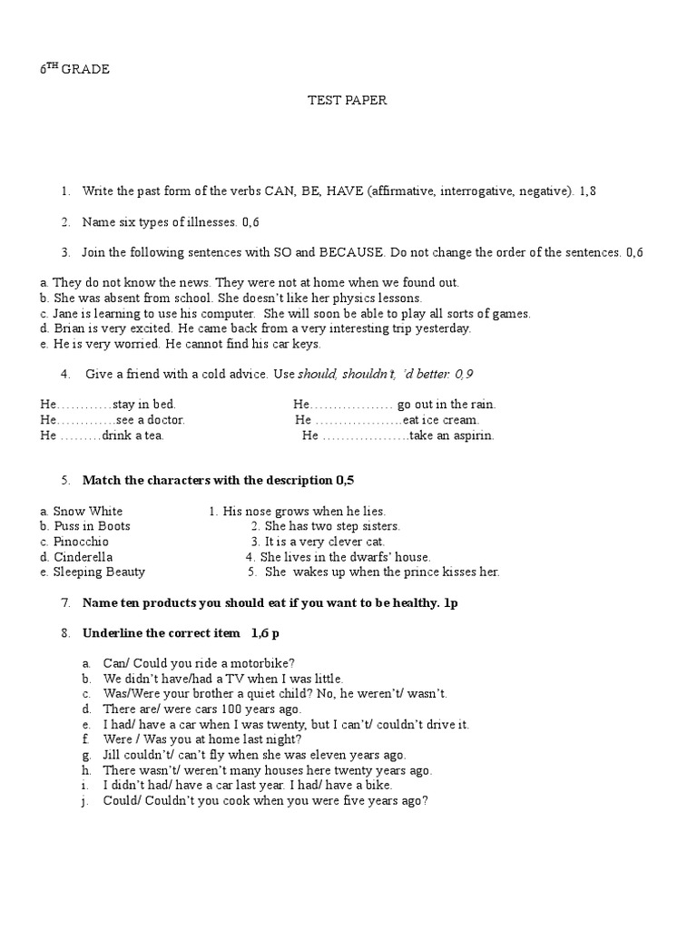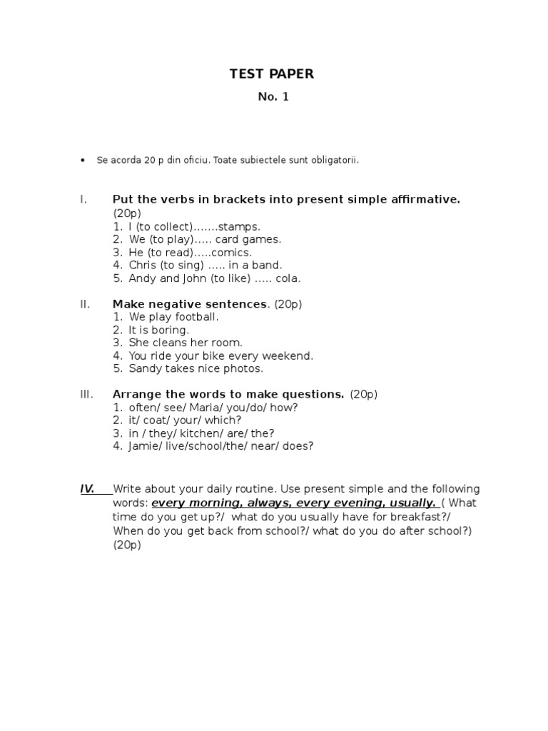 Test Paper Clasa A 6 A