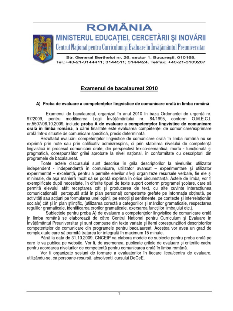 Subiectele Si Baremele Integrale De La Examenul De Limba Si