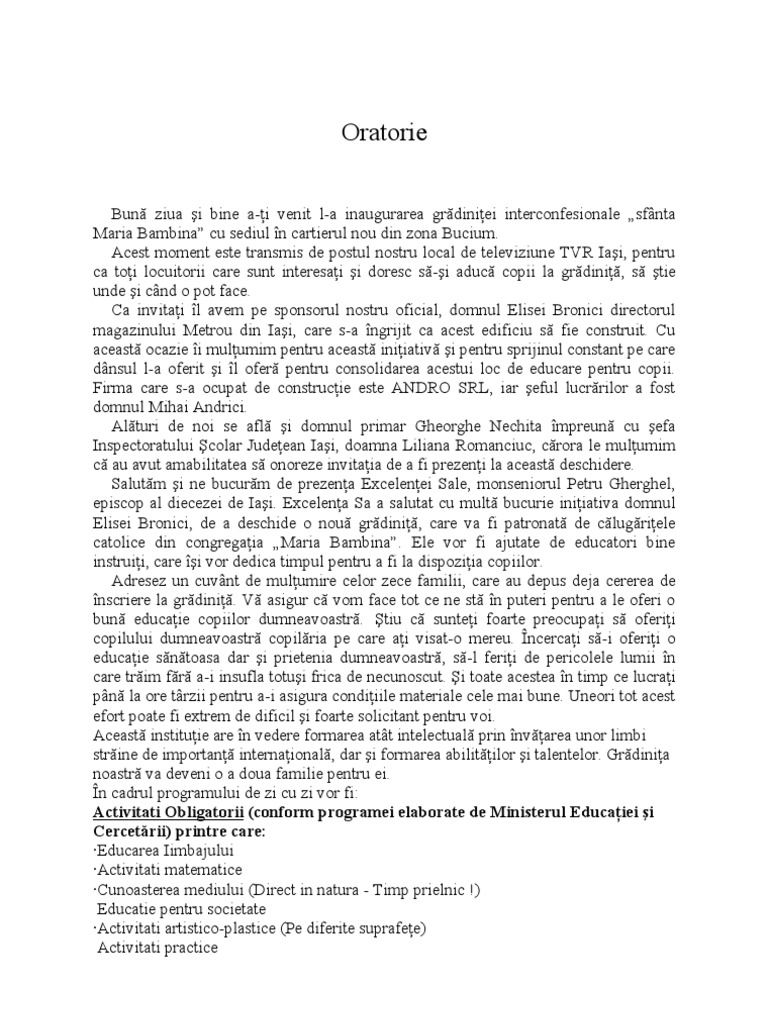 Discurs De Deschidere A Unei Gradiniţe