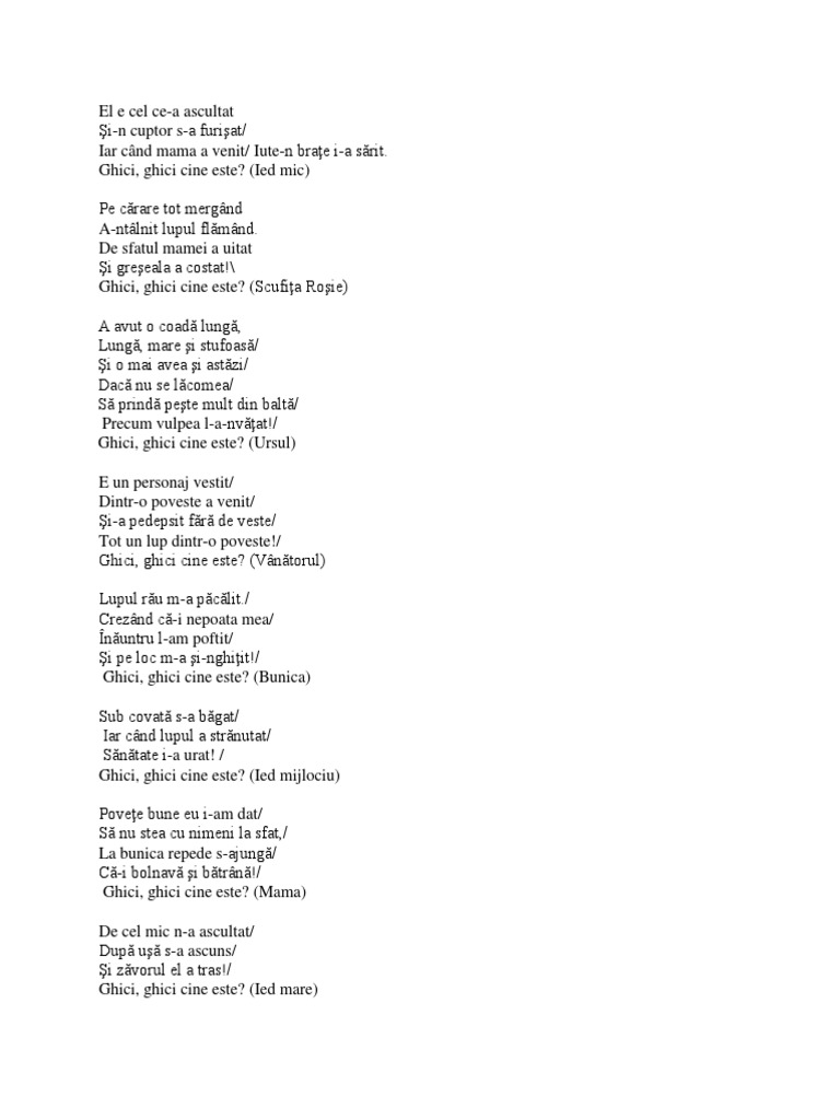Ghicitori Personaje Din Povesti Pdf Document