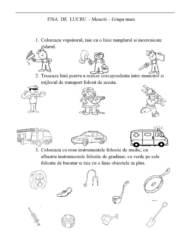 Fise De Lucru Gradinita Fise De Lucru Cu Meserii Grupa Mare Fise Pentru Copiii De Gradinita