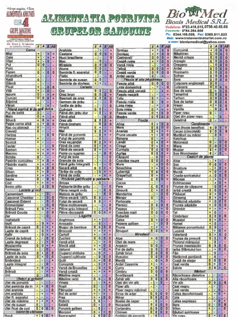 Tabel Alimentatia Pe Grupe De Sange