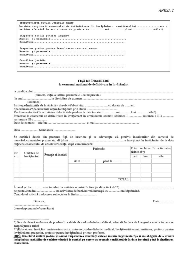 Examenul De Definitivat Din 2020 Model De Fisa De Inscriere Plus Adeverinta De Vechime Si Calificativ