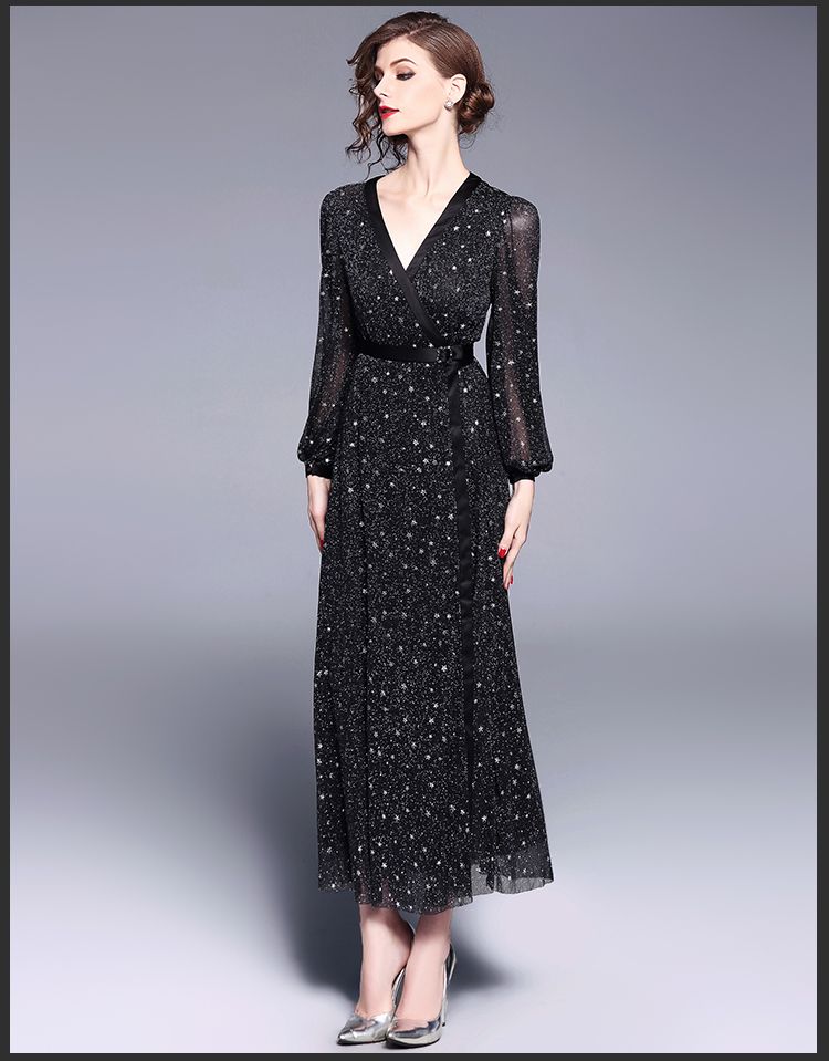 Grosshandel Spot Real Shot Schwarzes Kleid V Ausschnitt Langarm