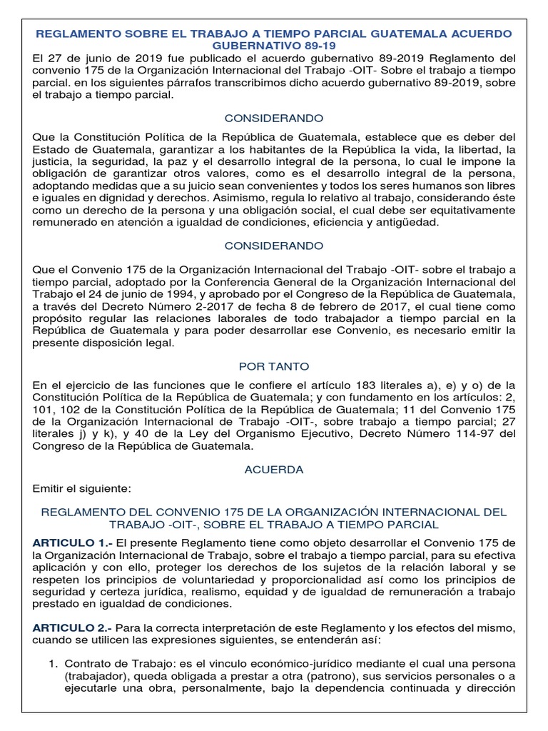 Reglamento Sobre El Trabajo A Tiempo Parcial Guatemala Acuerdo Gubernativo 89 Derecho Laboral Organizacion Internacional Del Trabajo Perioadă De Probă Gratuită De 30 De Zile Scribd