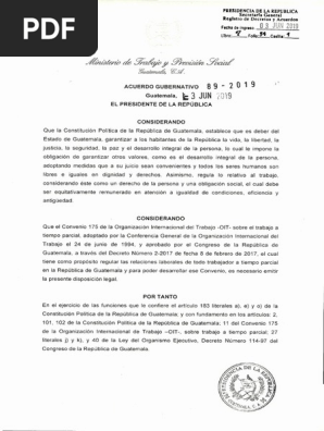 Acuerdo Gubernativo 89 2019 Tiempo De Trabajo Derecho Laboral Perioadă De Probă Gratuită De 30 De Zile Scribd