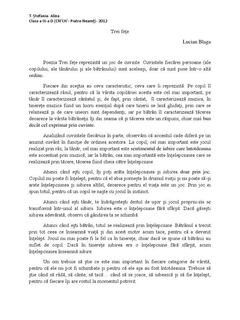 Trei Fețe Lucian Blaga Comentariu
