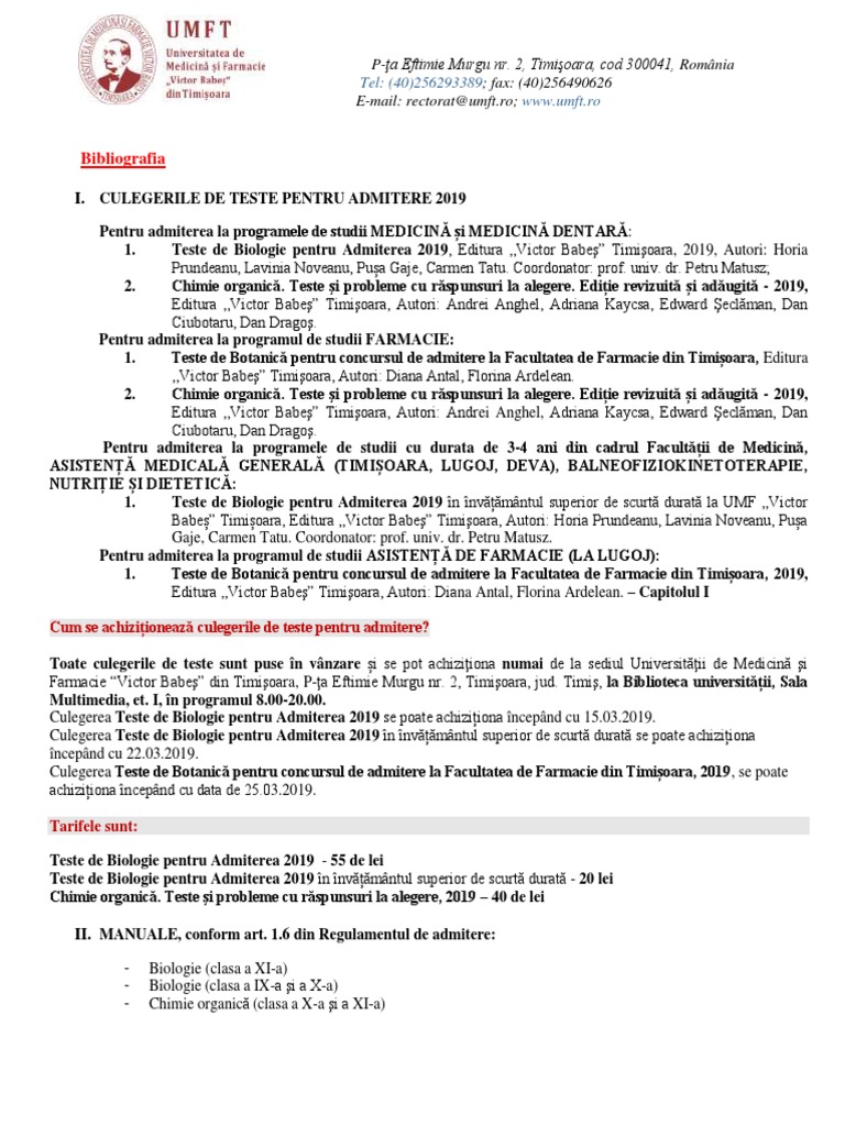 Medicala Generala Subiecte Admitere Medicina Timisoara 2019