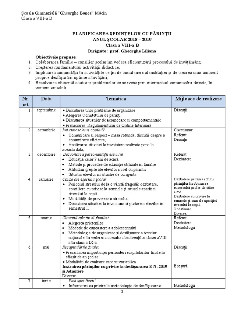 Proces Verbal Sedinta Cu Parintii
