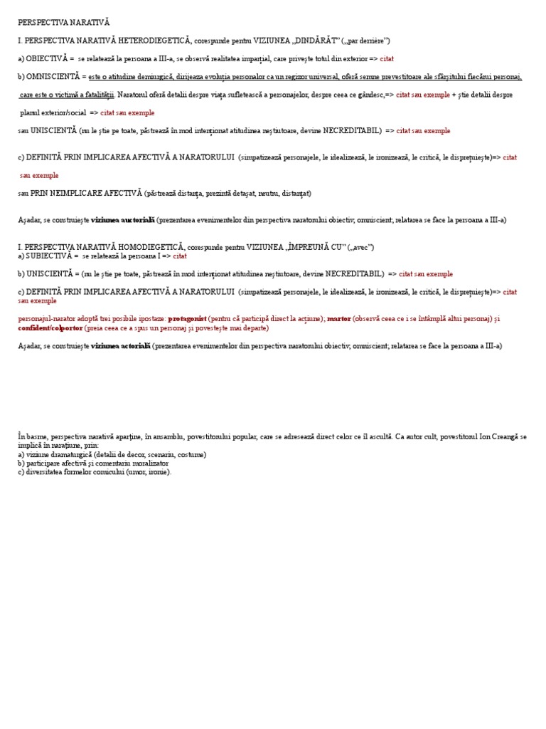 Perspectiva Narativa Obiectiva Exemple