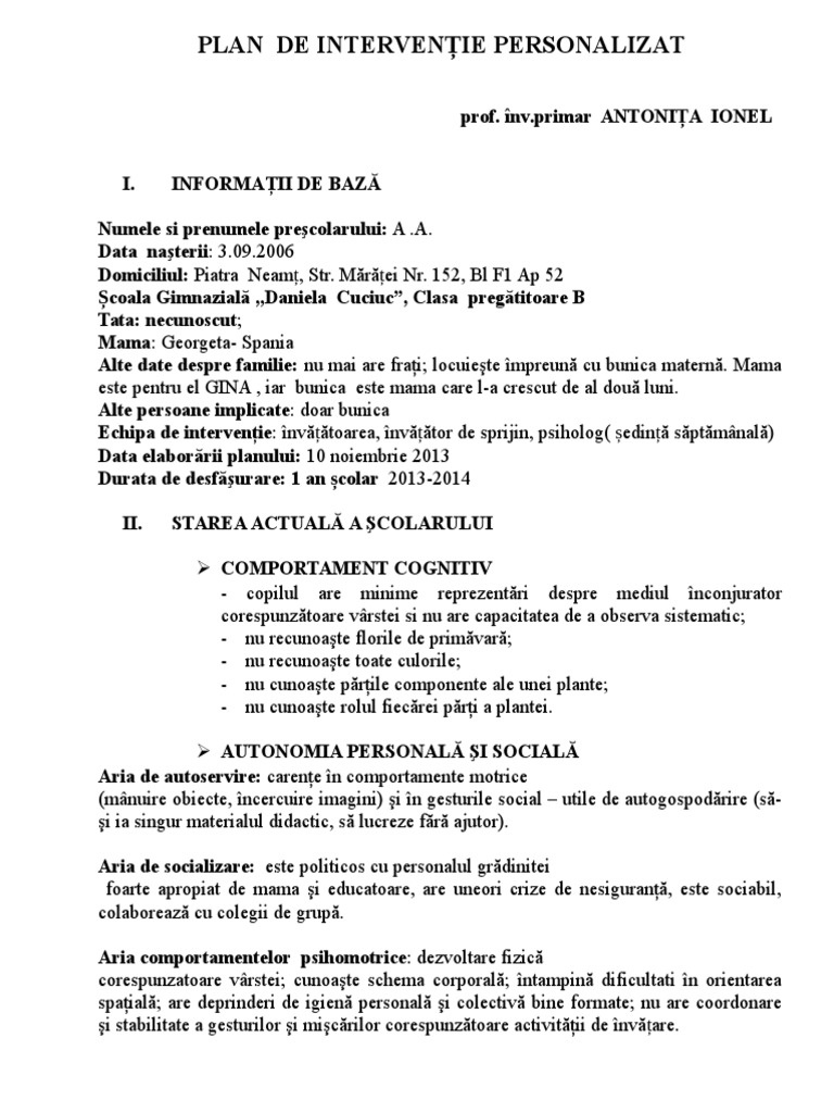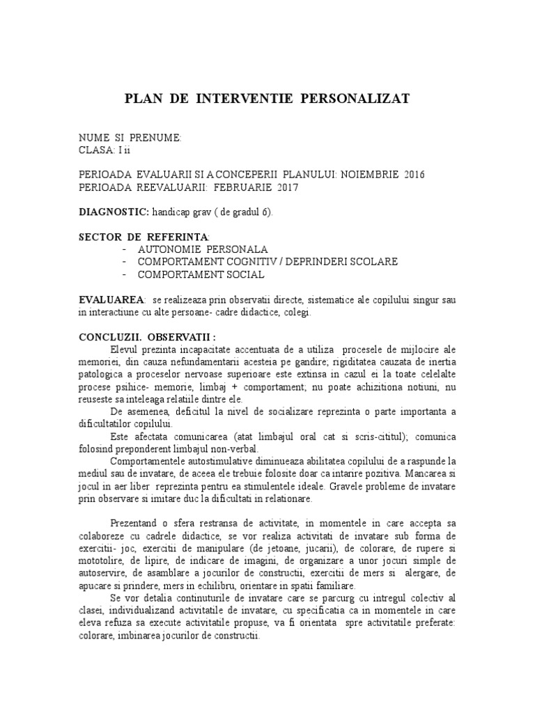 Doc Plan De Interventie Personalizat Mari Moldovan Academia Edu