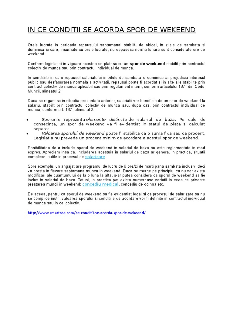 In Ce Conditii Se Acorda Spor De Wekeend