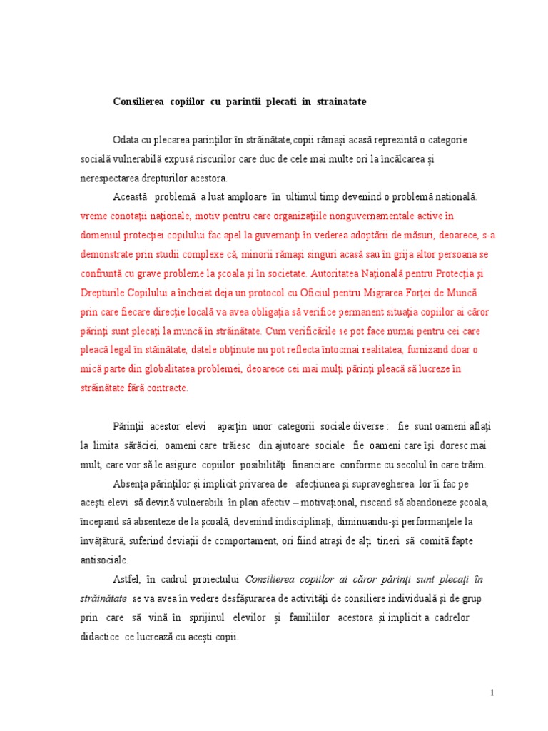 Referat Plan De Consiliere Pentru Adolescentii Cu Parinti Plecati