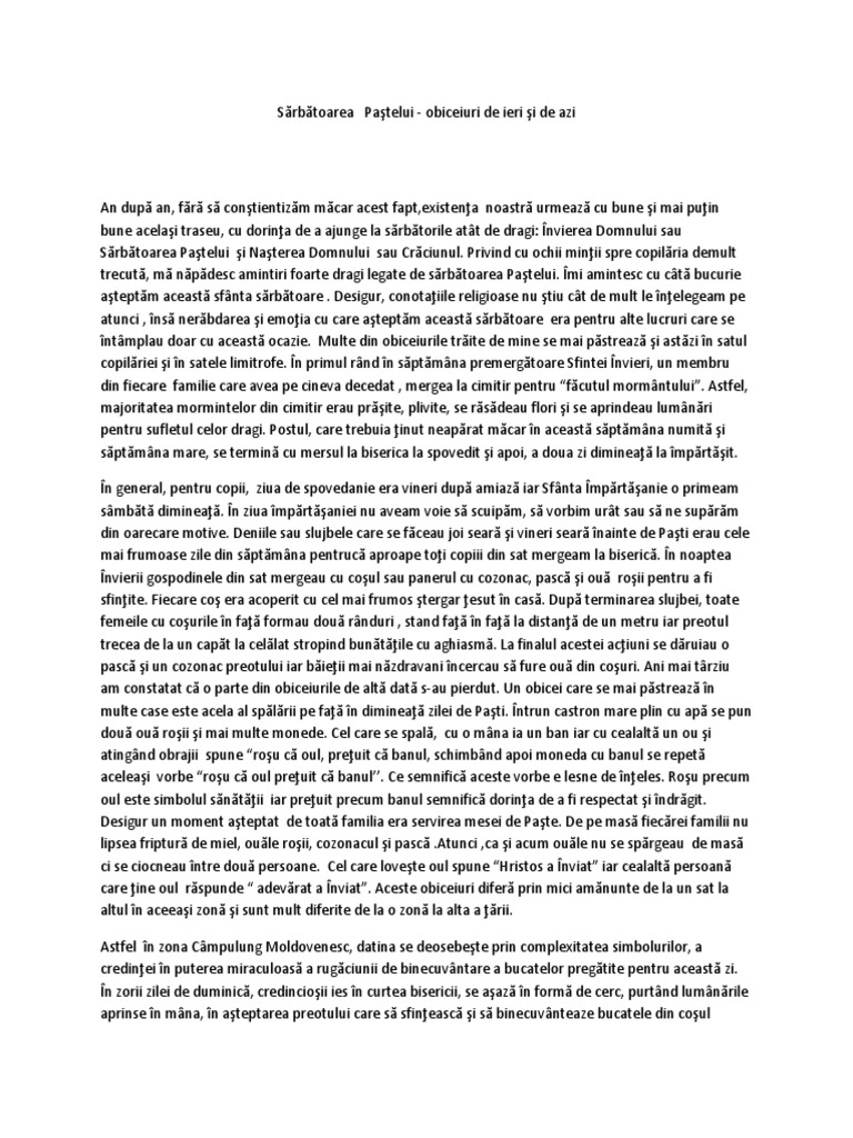 Referat Despre Sărbătorile Pascale Liceunet Ro