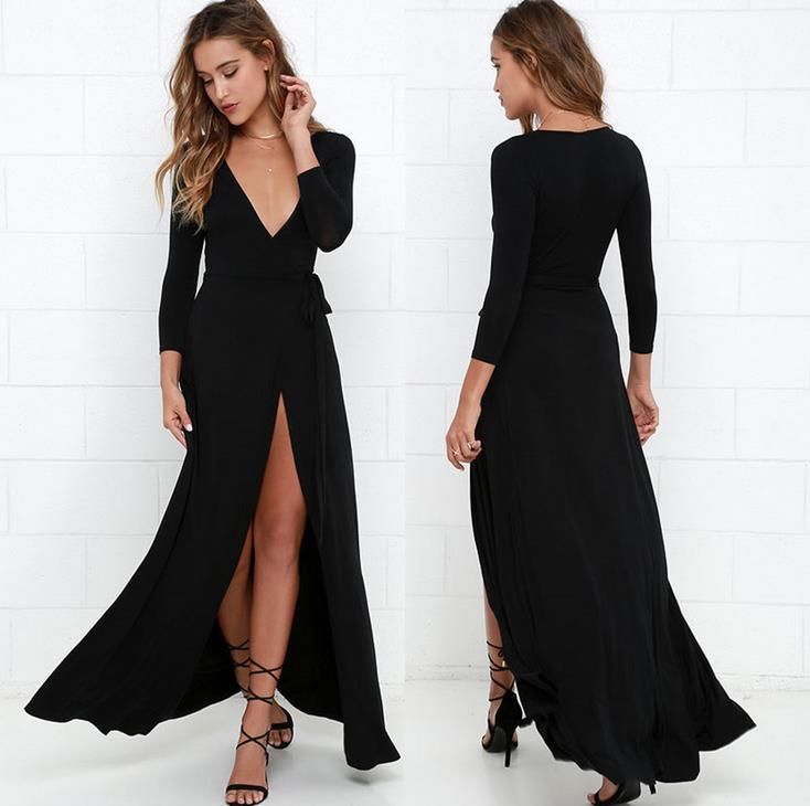 Grosshandel Neues Frauen Unregelmassiges Langes Kleid Damen Tiefes V Ausschnitt Langes Hulsen Beilaufiges Elegantes Schlitz Kleid Schwarzes Von Jewelrytrend 13 5 Auf