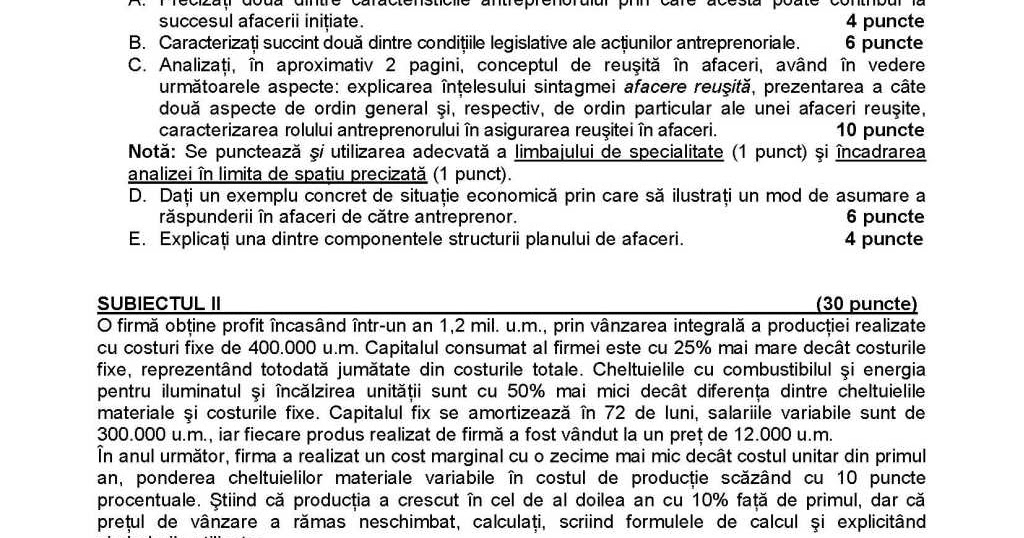 Subiecte Rezolvate Titularizare Economie Si Educatie Antreprenoriala
