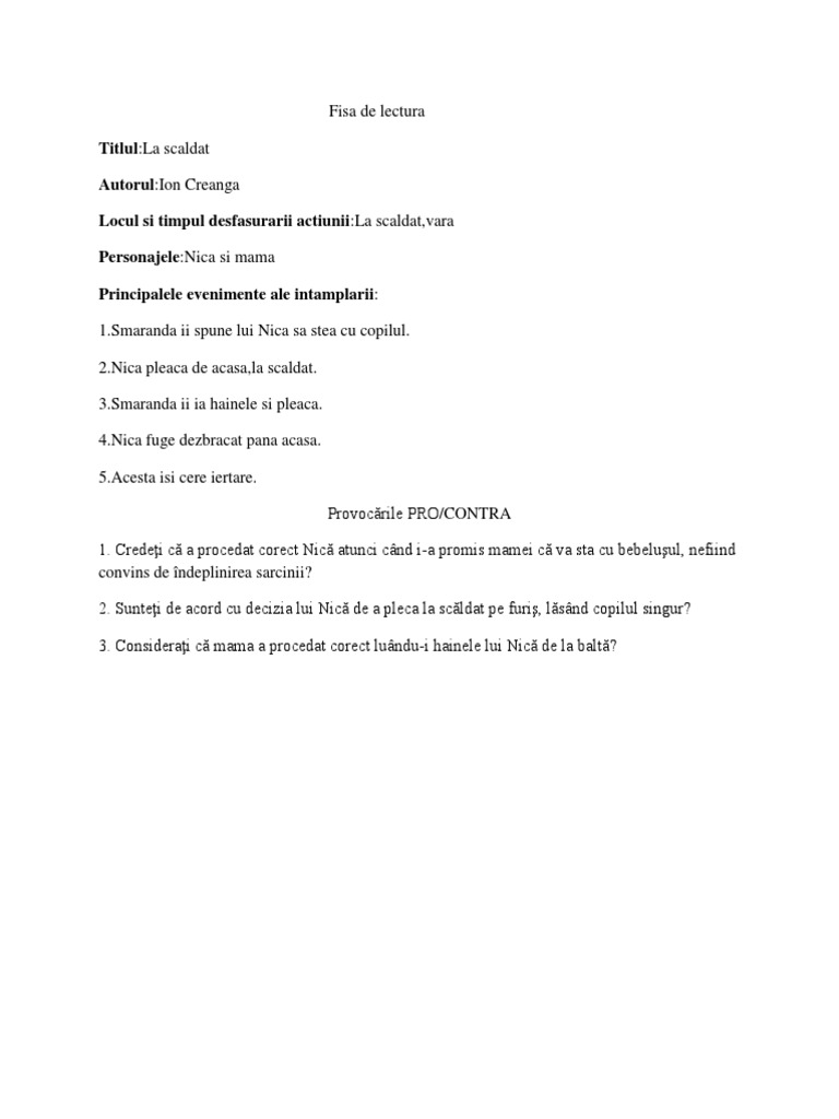 Sunteti Deacord Cu Plecare Lui Nica La Scaldat Scrieti Doua