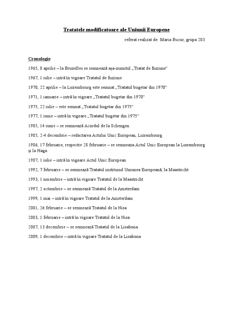 Tratatele Modificatoare Ale Uniunii Europene