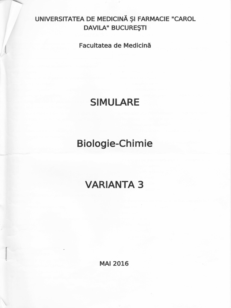 Barem Simulare Admitere Medicină București 2016 Varianta 1