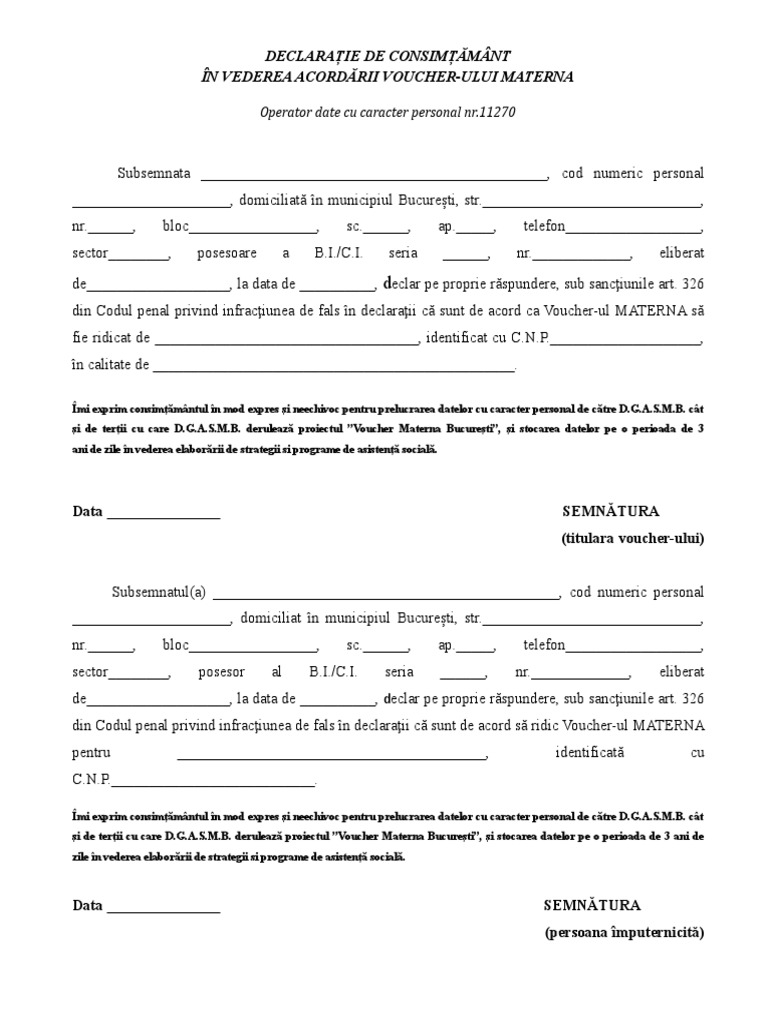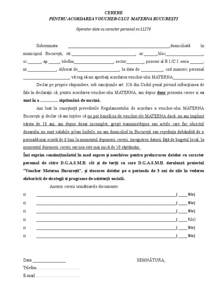 Pentru Acordarea Voucher Ului Materna București Operator Date Cu